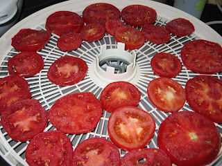 So far I've dried... cherry and grape tomatoes, viva italia slices, champagne grapes (from my Bountiful Basket co-op), black grapes (also from BB co-op), apple slices, mint, and oregano.